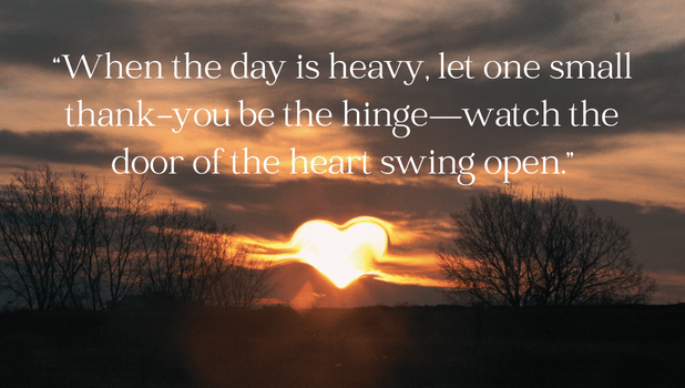 I want to share with you a few gentle doorways back into gratitude. These aren’t tasks on a checklist; think of them as small rituals, scattered across the day, that keep us tethered to what is still good and possible.